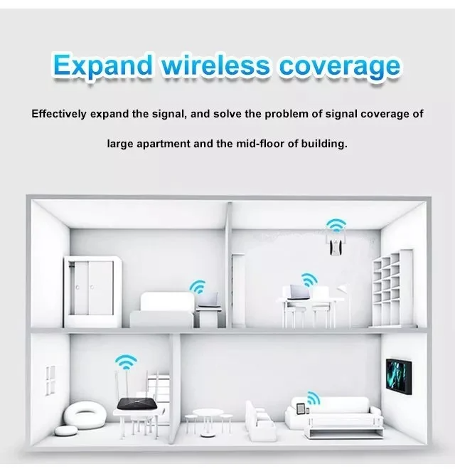 يركّب في دقائق ويخدم مع الهاتف والآيباد، اللابتوب، التلفزيون، TV Box، الكمبيوتر وحتى كاميرات المراقبة… ويزيد التغطية في غرفة النوم، الصالة، الشرفة والمرآب حسب مكان التركيب.